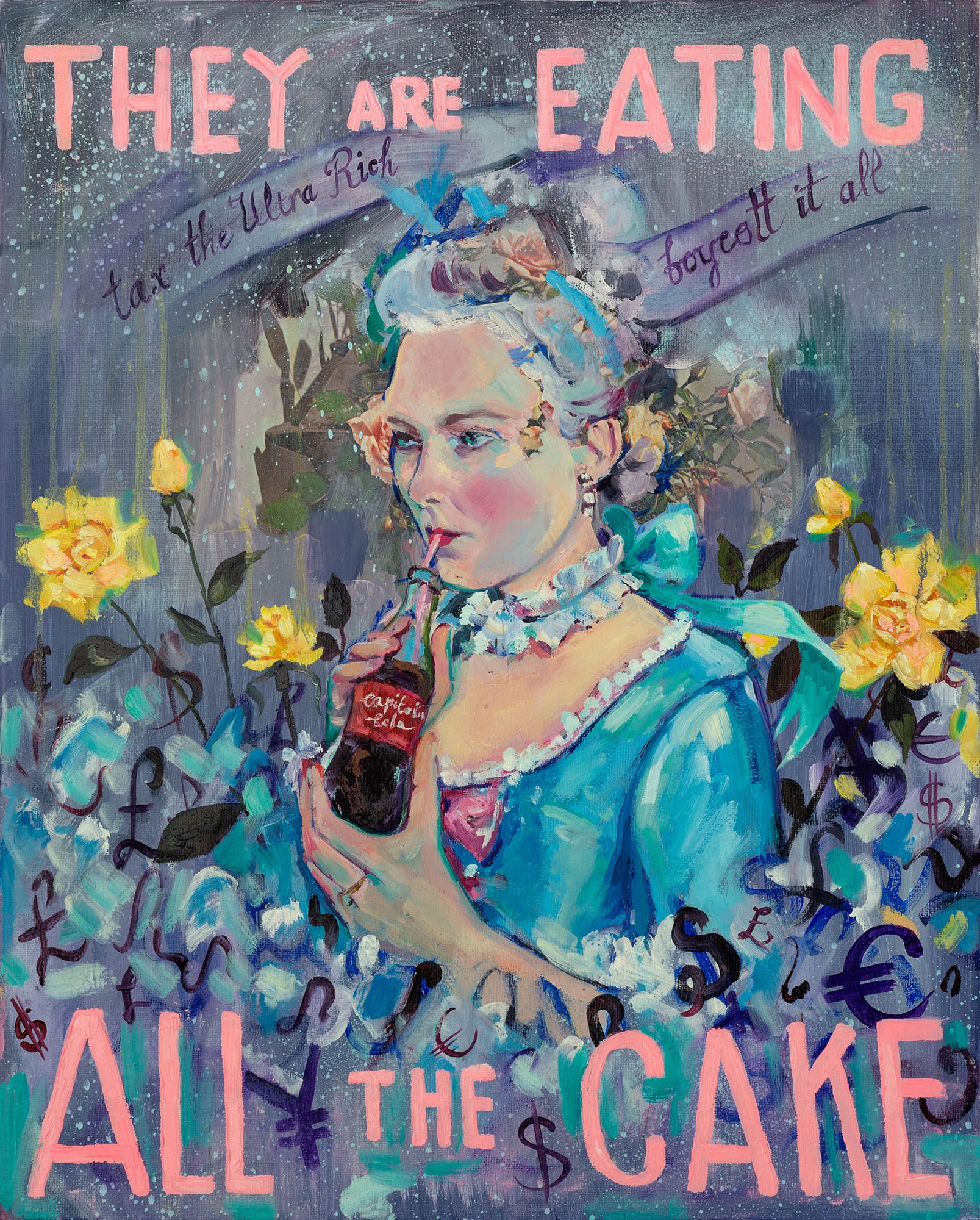 Portraiture has been a steady passion throughout her life, and celebrating the feminine form. She finds the narratives for women more complex and interesting in addition to their diverse physical beauty. In recent years she has enjoyed interpreting pop culture in her work - flirting with glamour and kitsch; exploring tropes and symbols of femininity. This has also led to exploring historical female protaganists and their often problematic political place in the patriarchy and how we view celebrity worship.