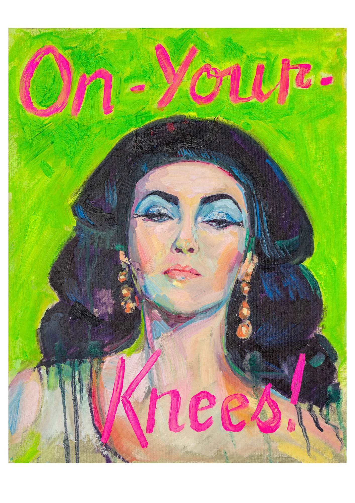 More recently she has been honing her skills painting in oils where she focuses on traditional painting techniques for the figures but introduces text, fluorescent accents, and decoupage into the surrounds to ensure her painting journey takes unexpected twists and turns. Elements of the Artist's whim and joy are then captured and resemble the fervent scrapbooking and image-banking which many women practice and hold closely as a badge of honour in terms of their taste and style.